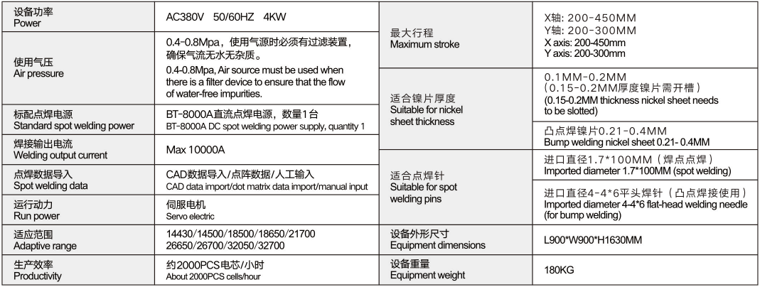 8.适合镍片厚度:0. 1MM---0.3MM (0.21—0.3MM 厚度镍片需开槽)