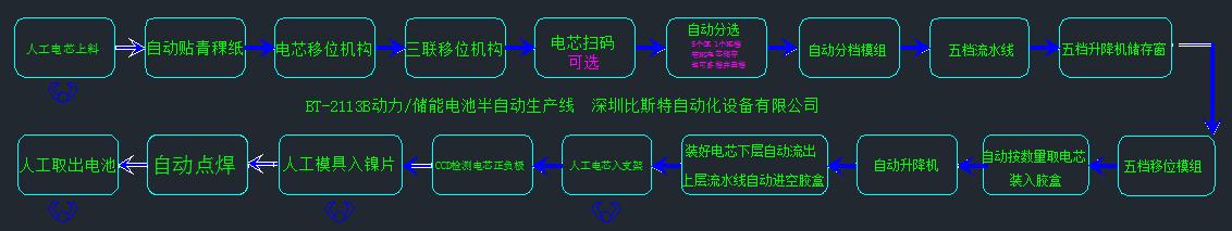 BT-2113B2电芯自动面垫分选装盒生产线摆放图 长10.5*宽2.3*高1.88米